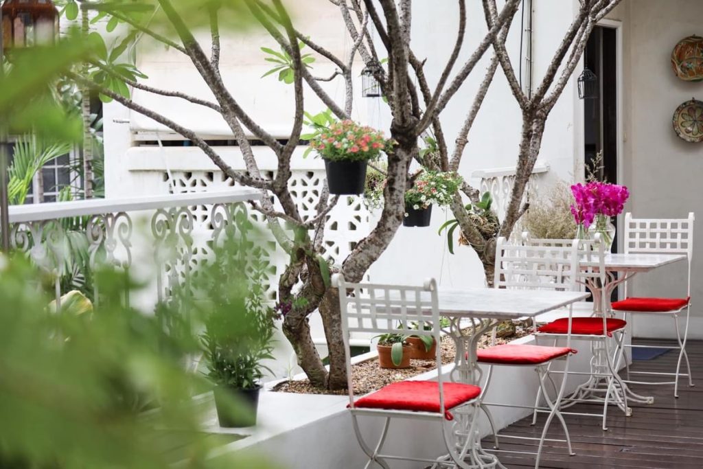 Relax under open skies in our leafy courtyard, a hidden gem in the city.